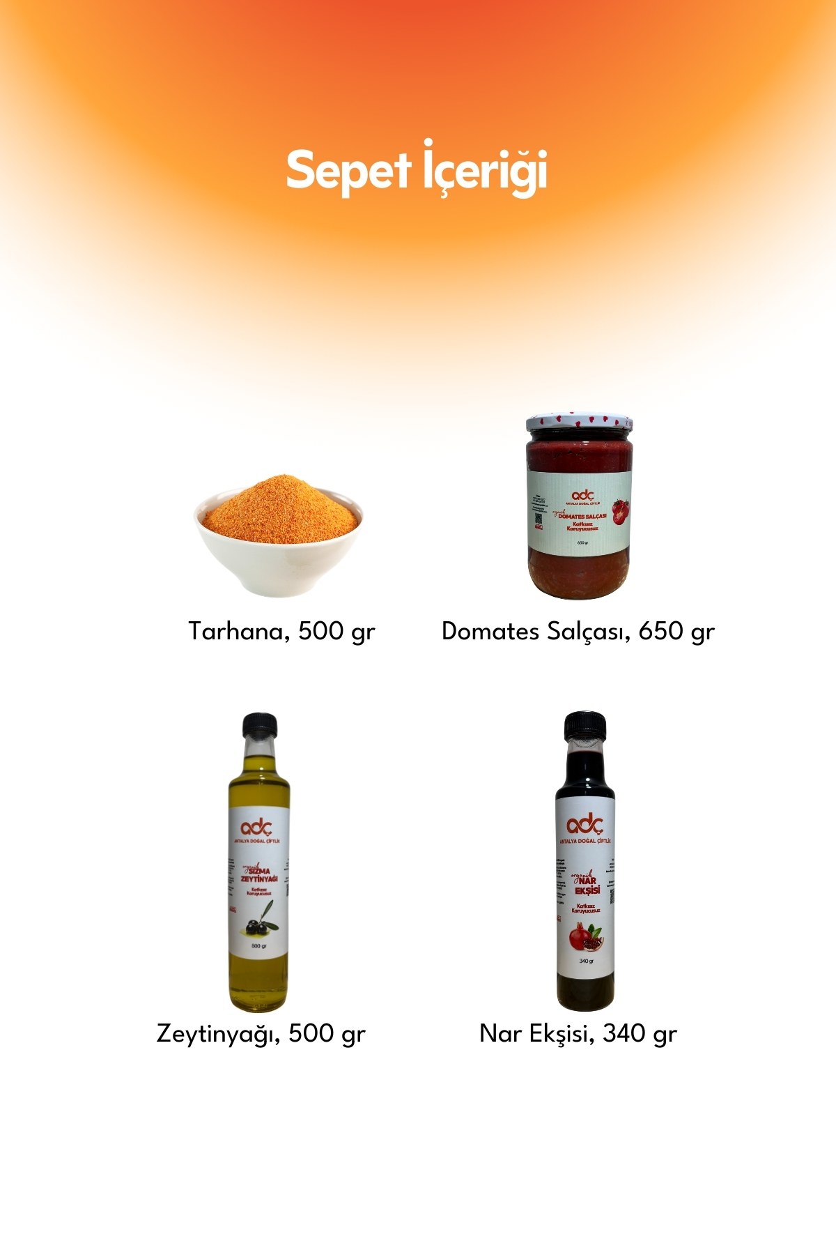 From tarhana to olive oil, from pomegranate sour sauce to tomato paste, each product adds a natural aroma to your dishes; dried stuffed varieties preserve the indispensable tastes of traditional tables. This basket, where you can meet your daily kitchen needs all at once, offers both a delicious and practical solution.